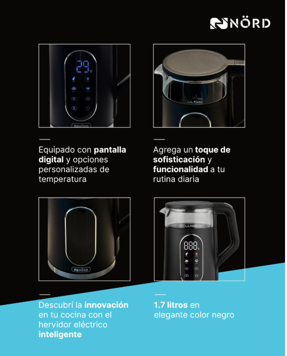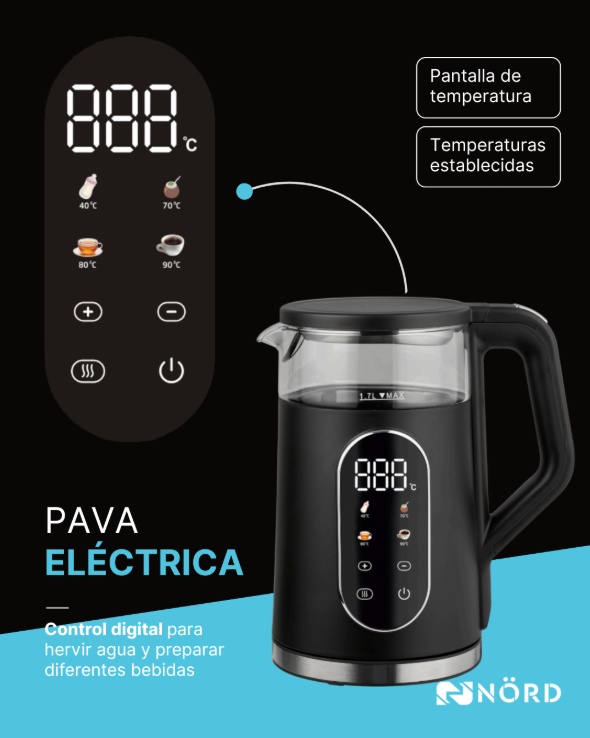 Esta pava eléctrica digital destaca por su diseño moderno y funcionalidad. Está equipada con una pantalla LED que te permite visualizar la temperatura en tiempo real, garantizando resultados perfectos. Su capacidad de 1.7 litros y materiales de alta calidad, como el acero inoxidable, aseguran durabilidad y seguridad. Además, incluye una función de apagado automático para prevenir accidentes y ahorrar energía.